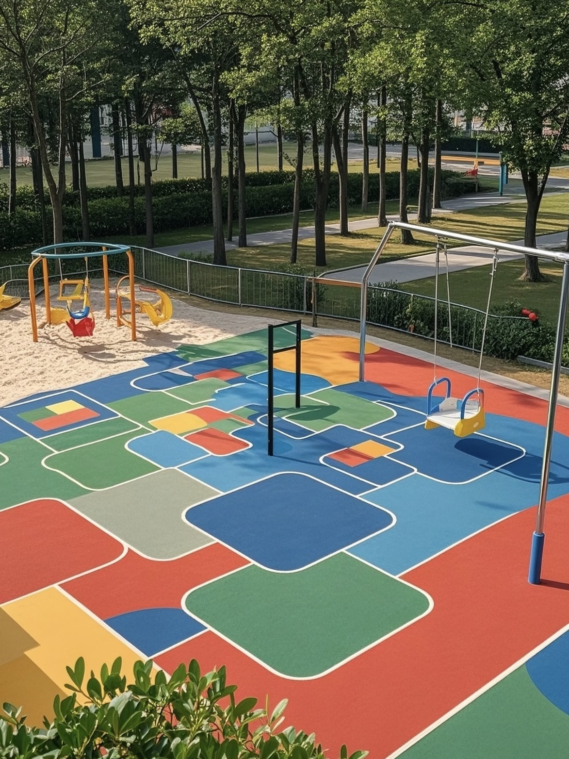 鲜艳的红色、活泼的黄色、宁静的蓝色……这些色彩就像一个个神奇的魔法元素,能激发孩子的想象力和创造力。孩子们在这样的场地里玩耍,就像是走进了一个童话王国。他们可以把红色的区域想象成火焰山,黄色的区域想象成黄金沙滩,蓝色的区域想象成大海。在这个充满想象的世界里,孩子们的思维得到了充分的拓展,他们的创造力也在不知不觉中得到了提升。